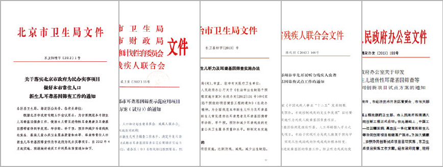 2012年4月,北京市在全國率先使用博奧生物自主研發的遺傳性耳聾基因檢測產品對該市新生兒進行耳聾基因檢測,成為全國乃至全世界第一個實現新生兒耳聾基因篩查的城市。隨后,成都、長治、鄭州、福州、太原、南通、東莞、濟南、新疆等近二十多個省市(區)也將該項目列入為民辦實事民生工程,開展新生兒遺傳性耳聾基因免費篩查。該產品已在臺灣地區和泰國獲得醫療器械注冊證,針對白人的耳聾基因檢測芯片也已取得階段性成果,未來將應用到更多的國際市場。