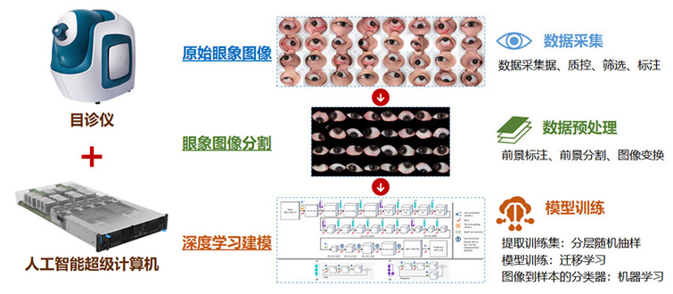 眼象作為中醫望診的重要征象,歷史悠久,在《黃帝內經?靈樞》、《證治準繩》等歷代醫家典籍中均有記載。傳統醫學通過臨床實踐,在眼象與病證的相關性方面積累了大量經驗以及通過觀察眼部表象診察疾病的方法。但由于缺乏呈現眼象實體的載體,缺乏信息化、可視化的呈現形式,目診的現代應用受到很大限制。博奧生物集團有限公司開發的眼象健康成像系統(白睛無影照相機,以下簡稱“目診儀”,注冊號:川械注準20182160164)是世界上第一臺中醫目診設備。基于目診儀,研究院開發了基于深度學習的眼象輔助疾病診斷方法和軟件系統,并與多家國內知名醫院開展了眼象輔助疾病診斷的科研項目。其中,與北京大學第三醫院喬杰院士團隊開展目診儀輔助多囊卵巢綜合征(PCOS)診斷研究(模型接收者操作特征曲線下面積(AUROC)=0.98)和輔助妊娠糖尿病(GDM)研究(模型AUROC=0.84);與中國醫科大學附屬第一醫院尚紅院士團隊開展目診儀輔助HIV感染診斷研究(模型AUROC=0.99);與廣東藥科大學郭姣教授團隊開展目診儀輔助糖尿病風險評估研究(模型AUROC=0.91),與廣州醫科大學附屬第一醫院何建行教授團隊開展目診儀輔助肺癌診斷研究(模型AUROC=0.95),與哈爾濱醫科大學附屬第二醫院于波教授團隊開展目診儀輔助冠心病診斷研究(模型AUROC=0.78),與西安紅會醫院郝定均教授團隊開展目診儀輔助骨質疏松癥診斷研究(模型AUROC=0.90)。